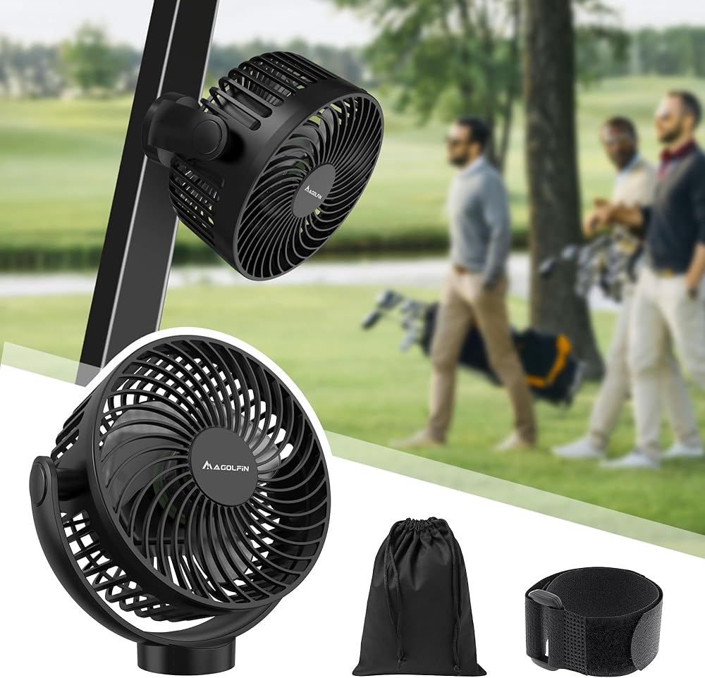 【360° Adjustable Rotation & Compact Portability】This accessory for golf carts features a flexible head that rotates 360° both vertically and horizontally, directing airflow precisely where needed. It includes a durable oxford bag for easy carrying. Its compact size (2.8*5.5*6.5 inches) fits effortlessly into your backpack or golf cart accessories collection.