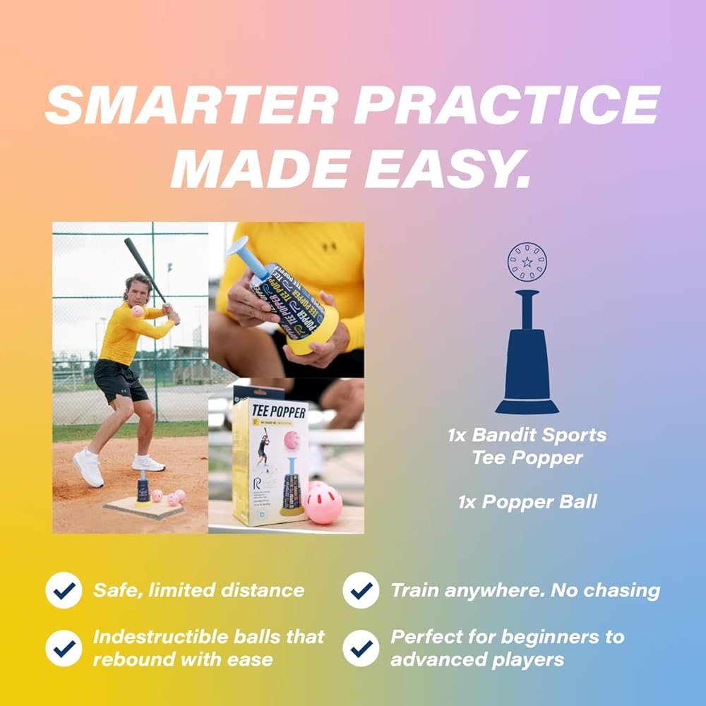 ALL LEVELS: This isn't just a regular batting trainer, anyone from tee ball to professional level ball players can benefit from the Tee Popper. The Tee Popper is designed to pop the ball up to 46 inches in height!