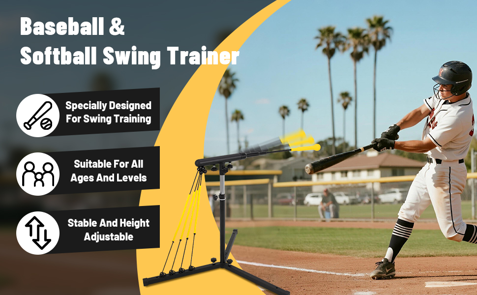 Height Adjustable for All Age Palyers: The height adjustable range of the baseball swing trainer is 31" to 43". Baseball softball training equipment can help players of all ages and levels aim and perfect their swings at each different ball position, practicing and continuously improving their skills through practice.