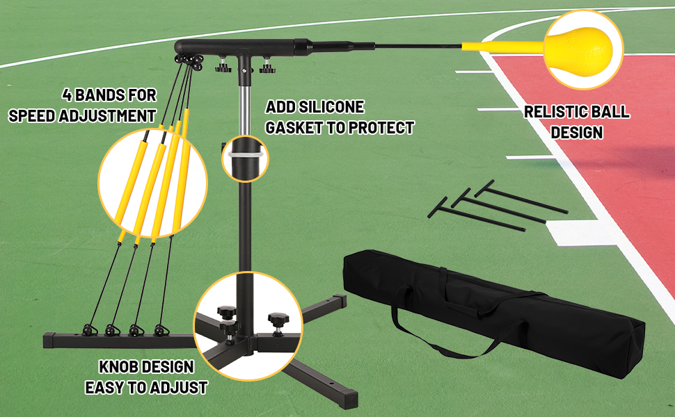 Package Content and Good After-sales Service: You will receive Baseball hitting trainer*1, Ground nails*3, Carry bag*1, Instruction Manual*1 and our 1-year warranlty and lifetime friendly customer service. If you encounter any problems while using the swing trainer baseball, please feel free to contact us through Amazon and we will reply within 24 hours to assist you in resolving the issue.