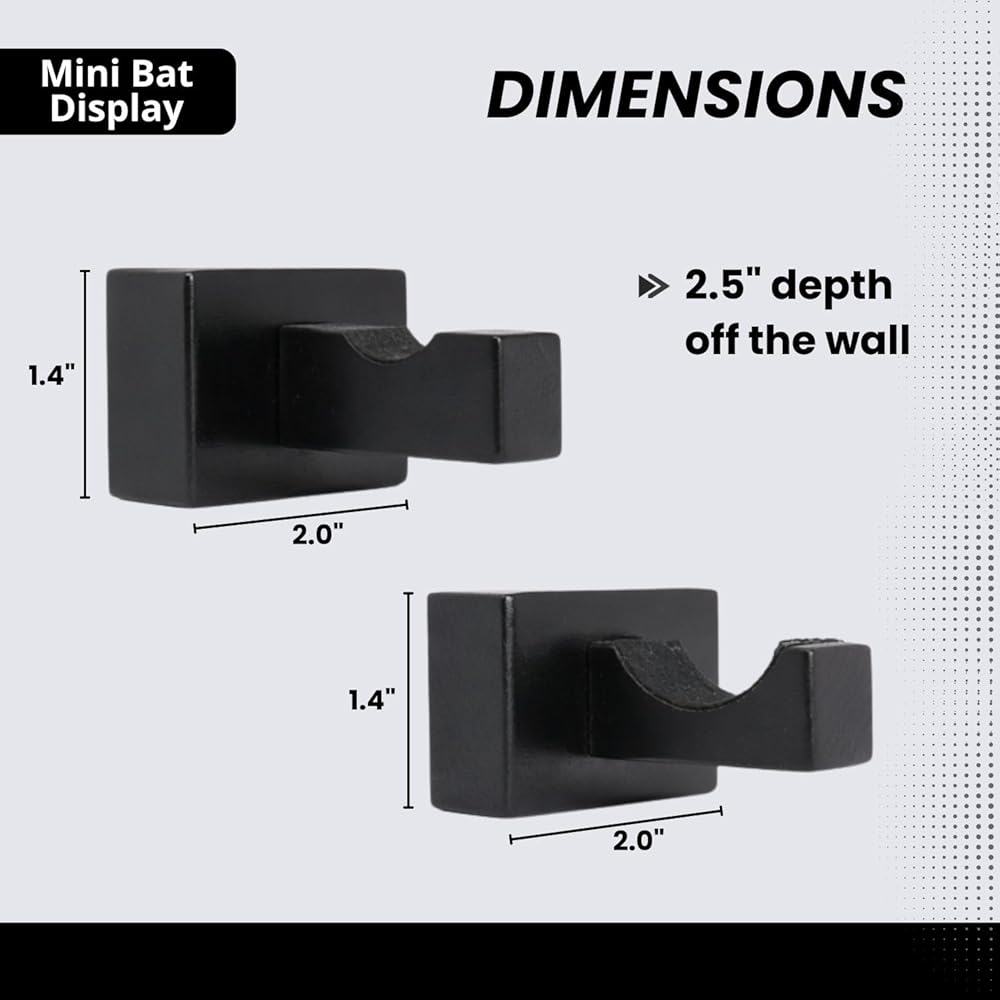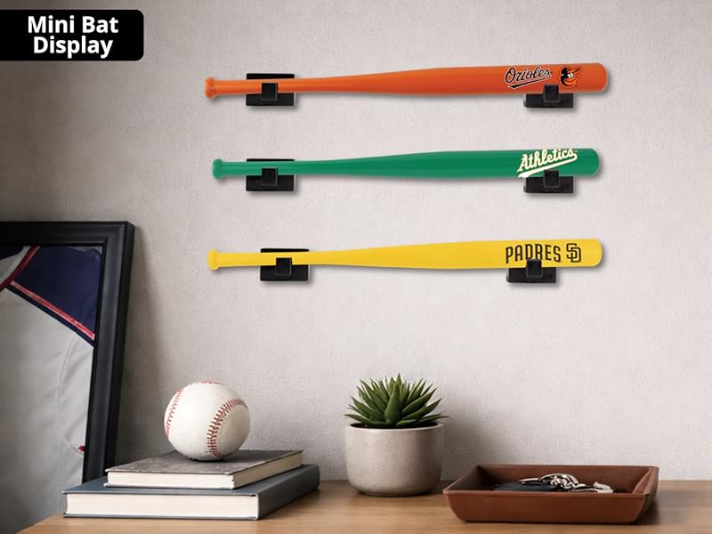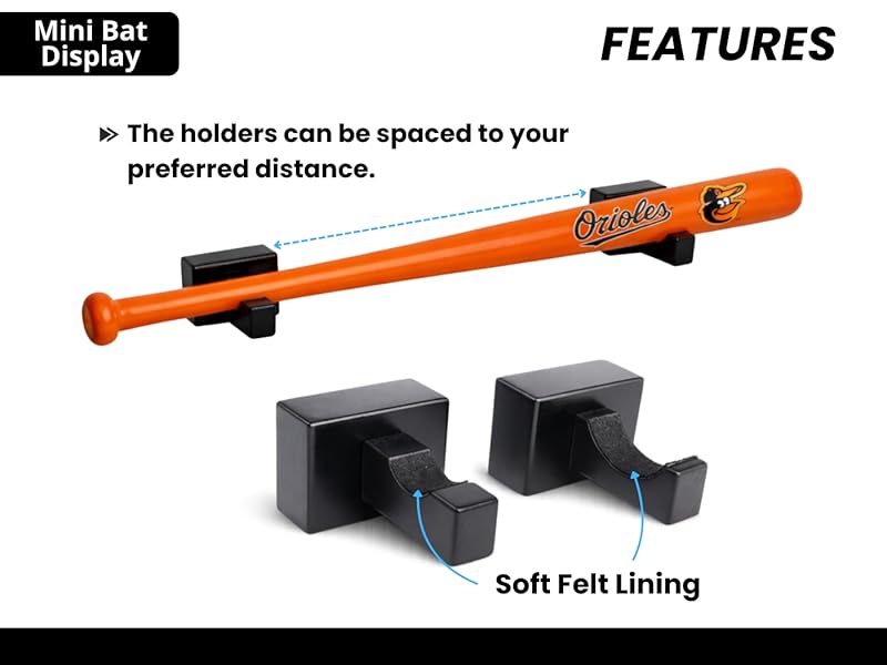 - Includes the two holders that allow you to display one mini baseball bat and the necessary wall-mounting hardware (screws & anchors)