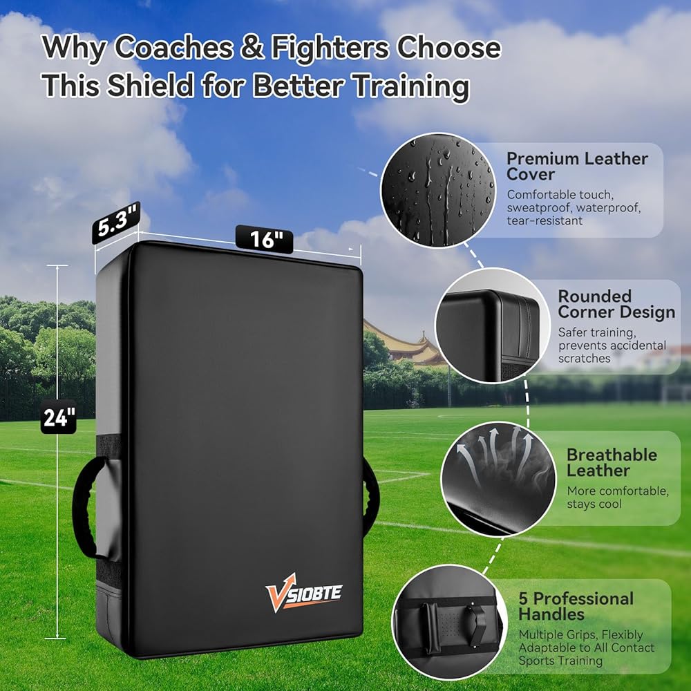 Military-Grade Durability & Safe Rounded Edges Waterproof PU leather wipes clean instantly; reinforced stitching withstands MMA/outdoor use. Rounded edges prevent collision injuries, and its lightweight build is easy to carry—ideal for gyms or fields.