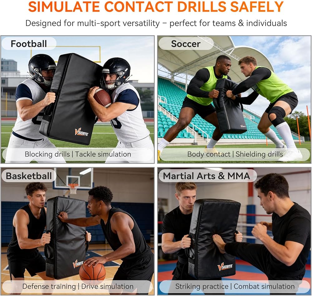 All-Purpose Training Pad for Every Contact Sport This 24"x16"x5.3" professional blocking pad works seamlessly for football, basketball, rugby, hockey, and martial arts (taekwondo, karate, muay thai). It handles blocking/tackling drills, offense/defense practice, and sparring alike—letting coaches/athletes simulate game-like intensity to boost reaction speed, precision, and safety.