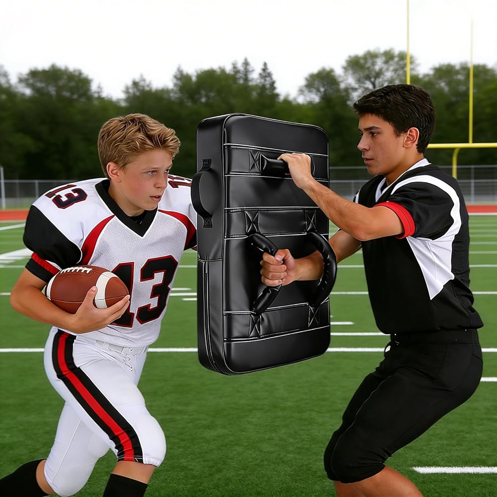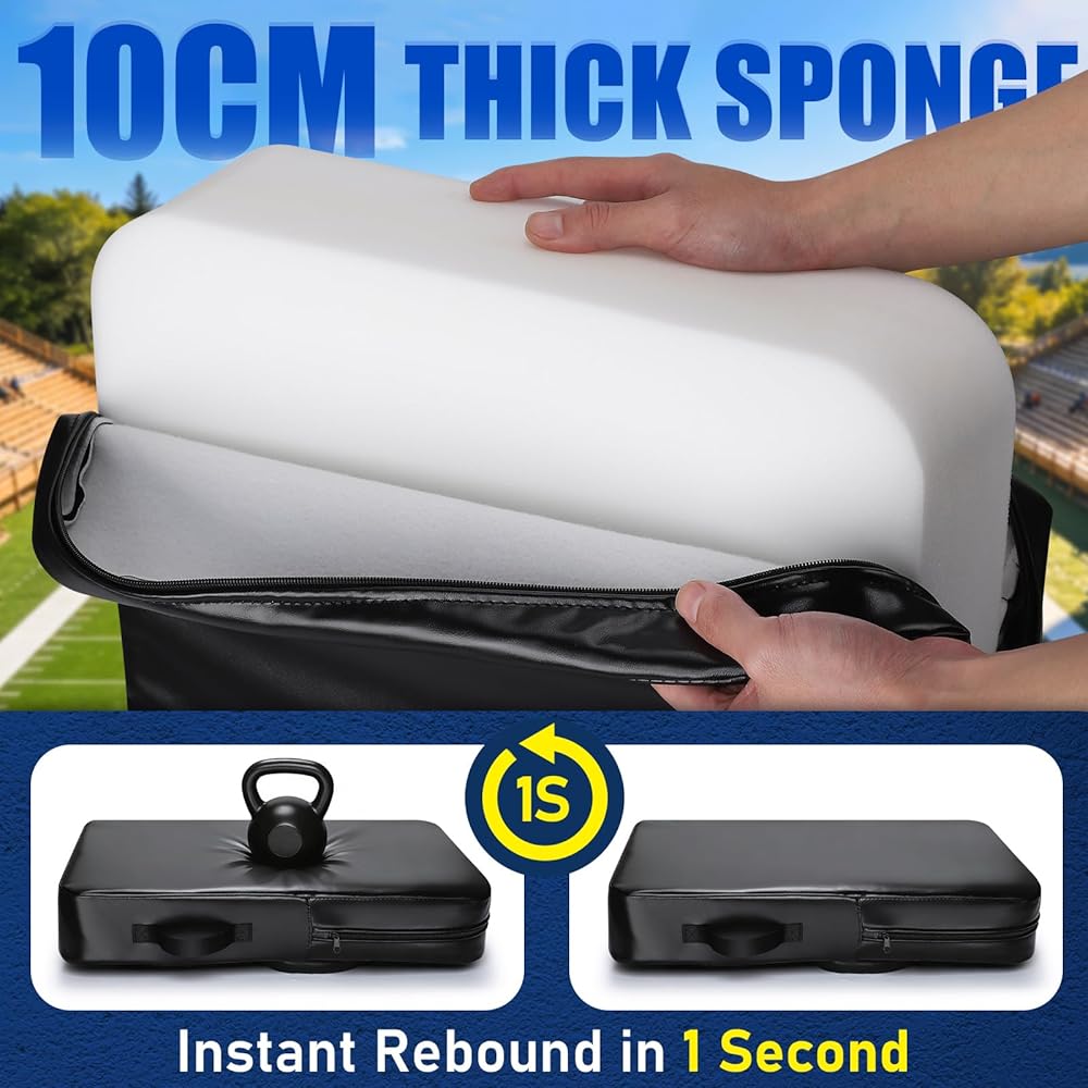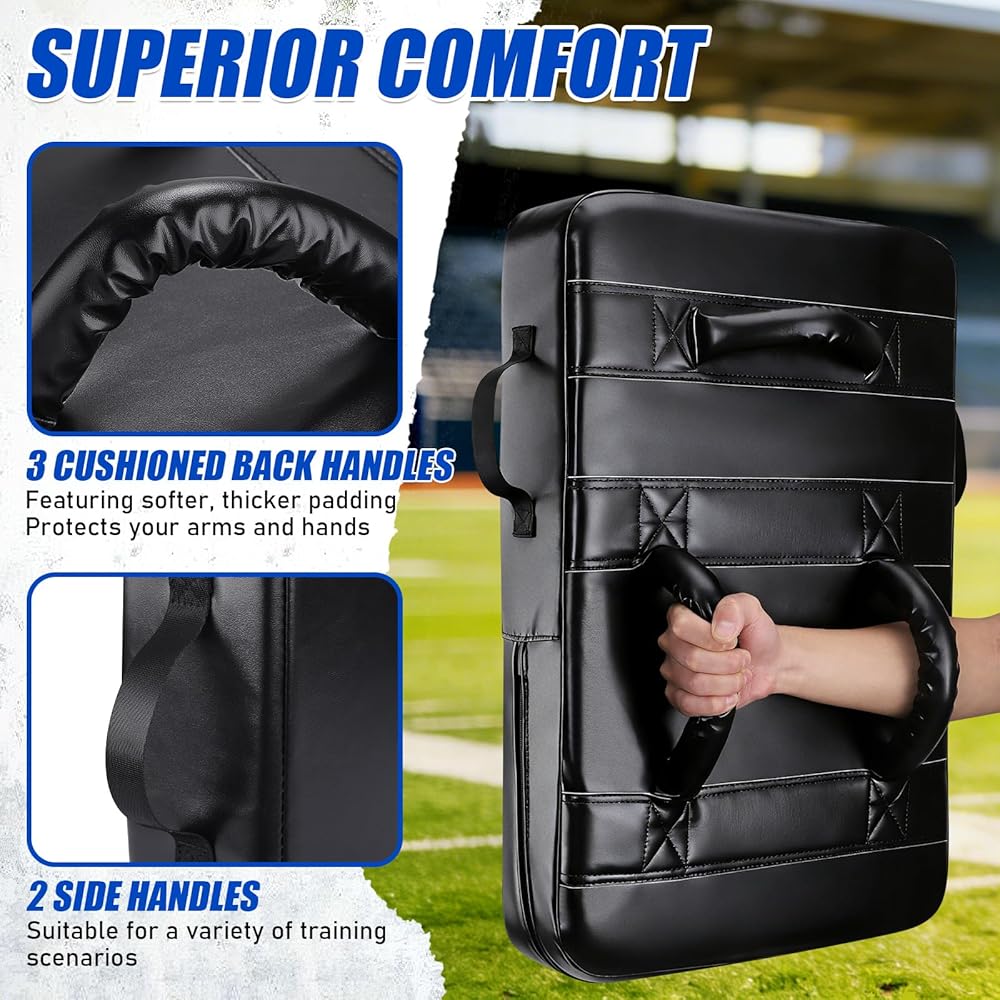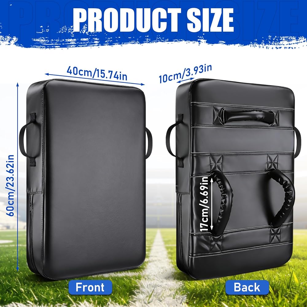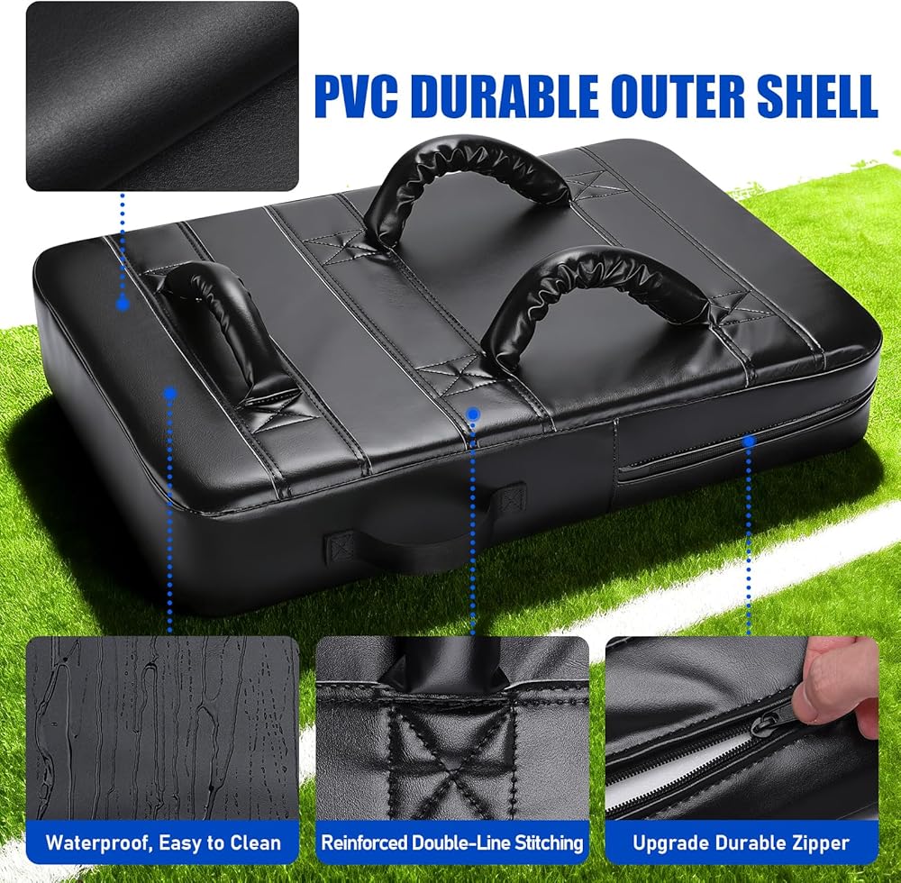 【Advanced Foam Core for Superior Player Safety】-- At its core is a denser, 10CM softer foam engineered for superior impact absorption. It provides a safer feel for both the holder and the athlete during high-contact football practice, basketball drills, or martial arts training. This advanced material minimizes sting and bruising, whether used for shoulder pads-style blocking, tackling dummies exercises, or kicking combinations, ensuring durable performance season after season