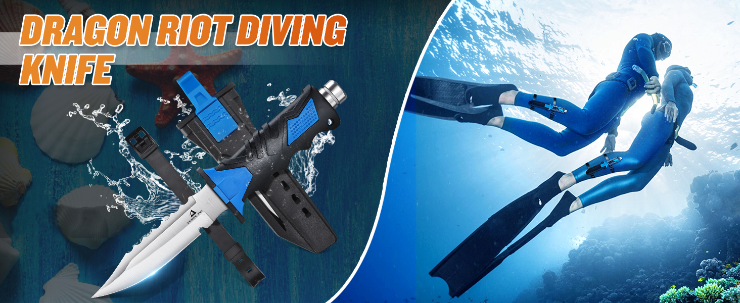 DRAGON RIOT Scuba Diving Knife with Leg Straps & Sheath - Stainless Steel Blade Dive Knife Lightweight, Sharp Divers Knife for Diving, Spearfishing, Snorkeling