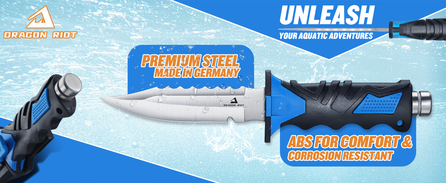 • Premium Stainless Steel Diving Knife -- The diving knife is made from German 1.4116 stainless steel, ensuring sharpness, hardness, and durability. The package includes a 10.2-inch dive knife, an impact-resistant ABS quick-release sheath, and two adjustable leg straps.
