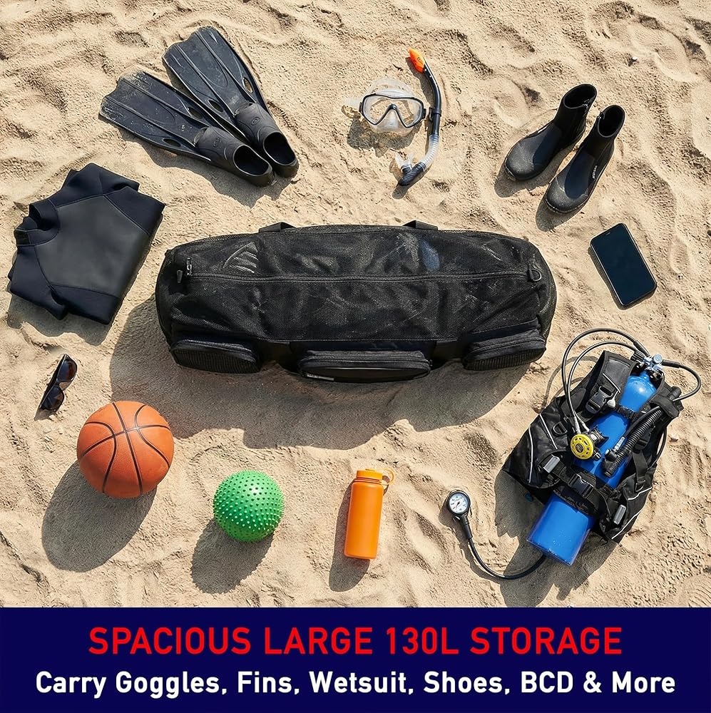 Nomad USA 130L Mesh Duffle Bag for Scuba Dive, Snorkeling, Swimming, Freediving - Pool/Beach Water Sports Gear Carry Bag with Shoulder Straps - Storage Travel Tote Bag for Camping, Gym, Workout
