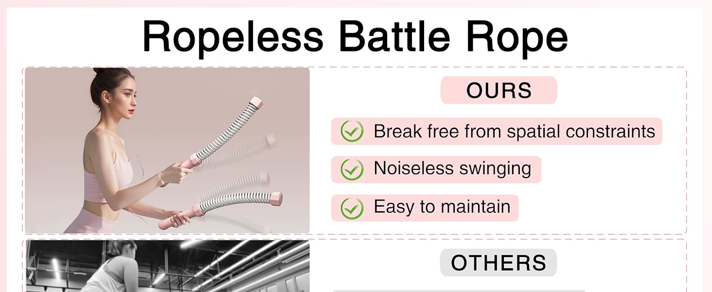 Full-Body workout - Targets arms, chest, back, shoulders, and core with versatile exercise options for HIIT, cardio, and strength training. Targets arms, shoulders, core, and legs with resistance comparable to traditional battle ropes.