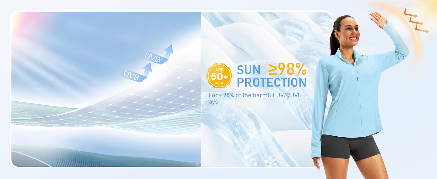 Full-Zip Stand Collar for Versatile Wear: Featuring a full-length zipper and stand collar, this long sleeve lightweight athletic jacket is easy to layer and provides extra protection from sun and wind. Ideal for running, cycling, hiking, walking, gym workouts, travel, and everyday outdoor activities.