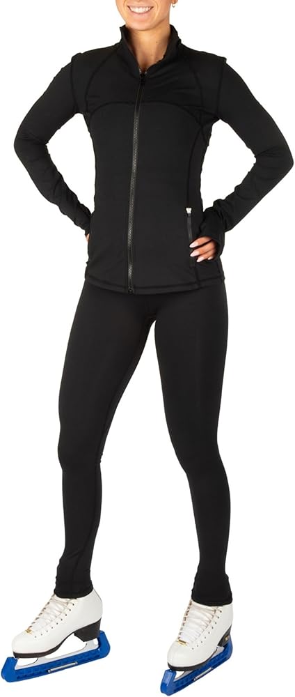 CRS Cross Skating Jackets are made from advanced stretch material which keeps its shape while you jump, spin and perform both on and off the ice. Our sweat wicking training warm up pulls moisture away from your skin to keep you feeling comfortable. Performance fit provides light compression with full athletic range of motion.