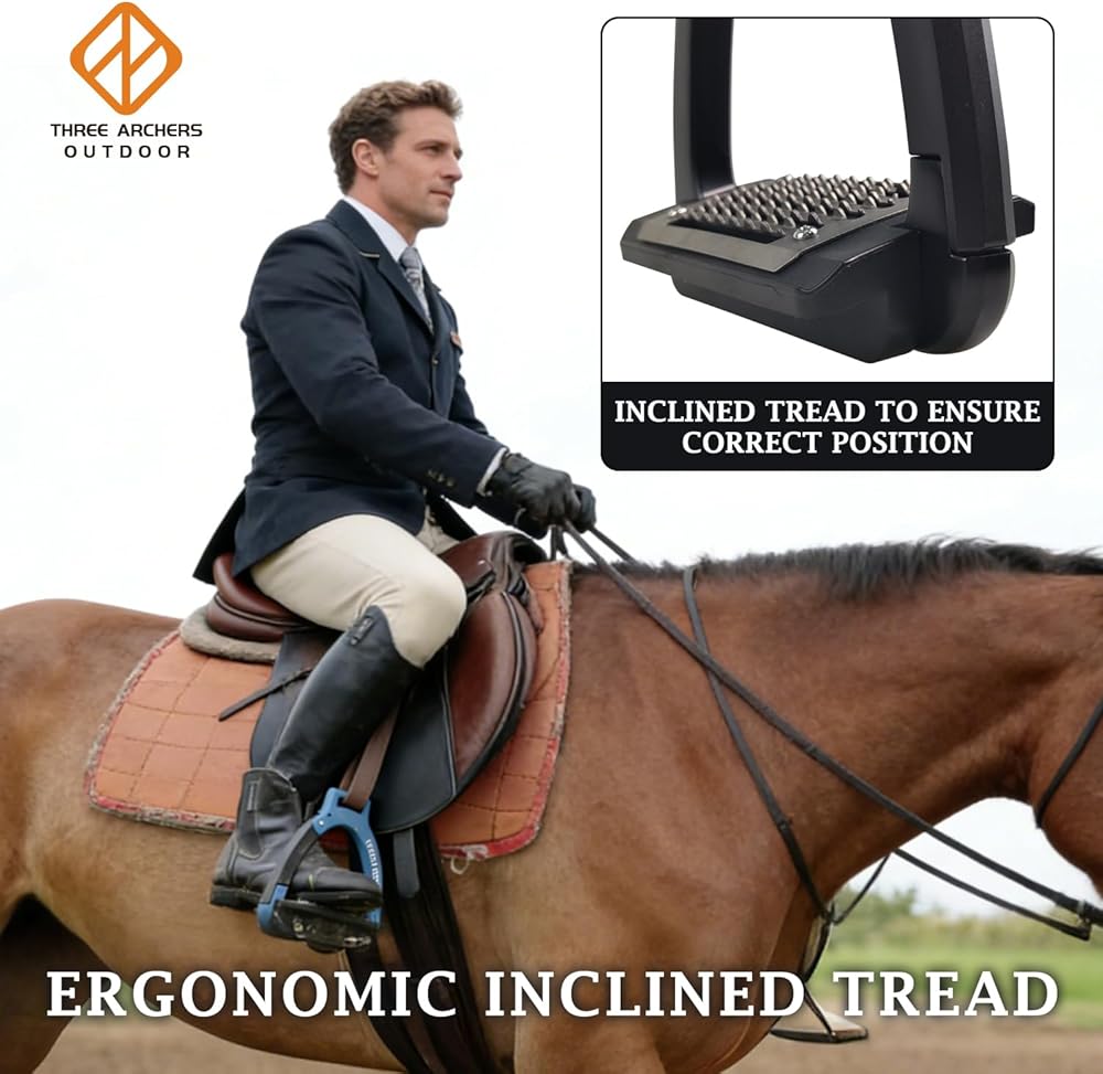 THREE ARCHERS Safety Stirrups Side Opening Design for Adults, Breakaway Stirrups with Anti-Slip Stainless Steel Inclined Tread Horse Riding Equipment for Equestrian Beginner Trail