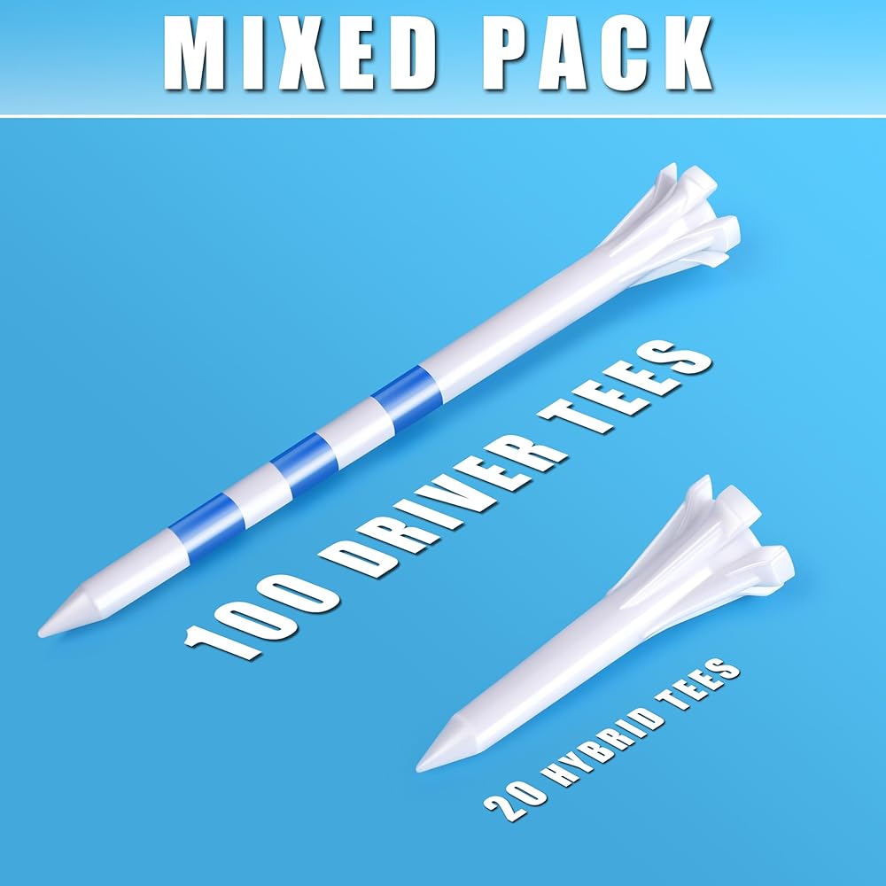 - Package Includes : 100 * 3-1/4" Plastic golf tees, 20 * 1-1/2" Plastic golf tees .