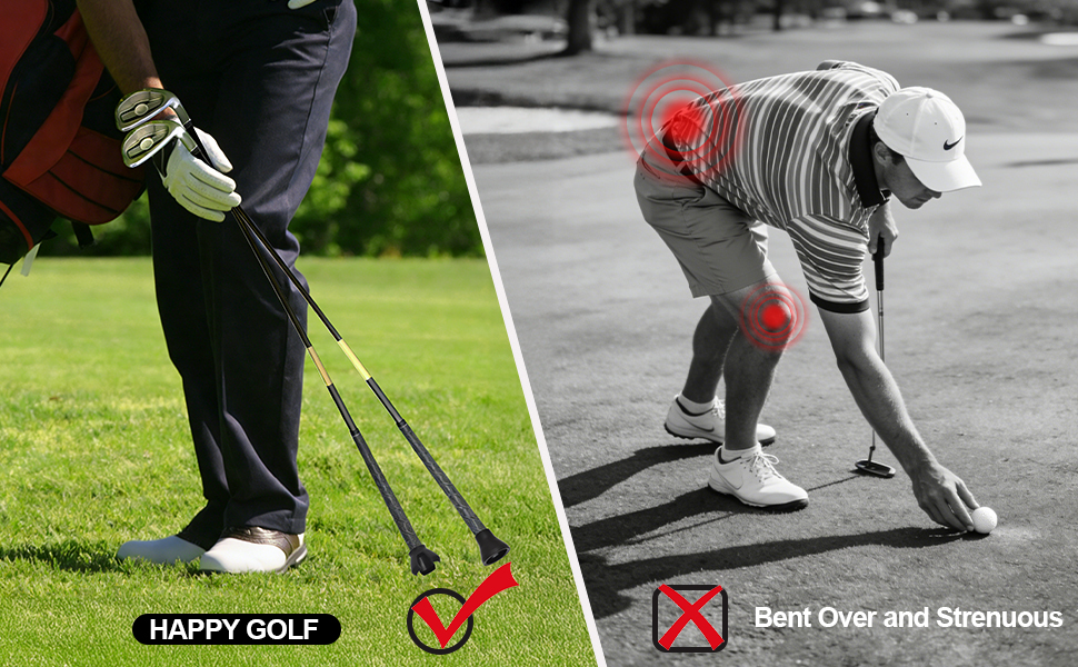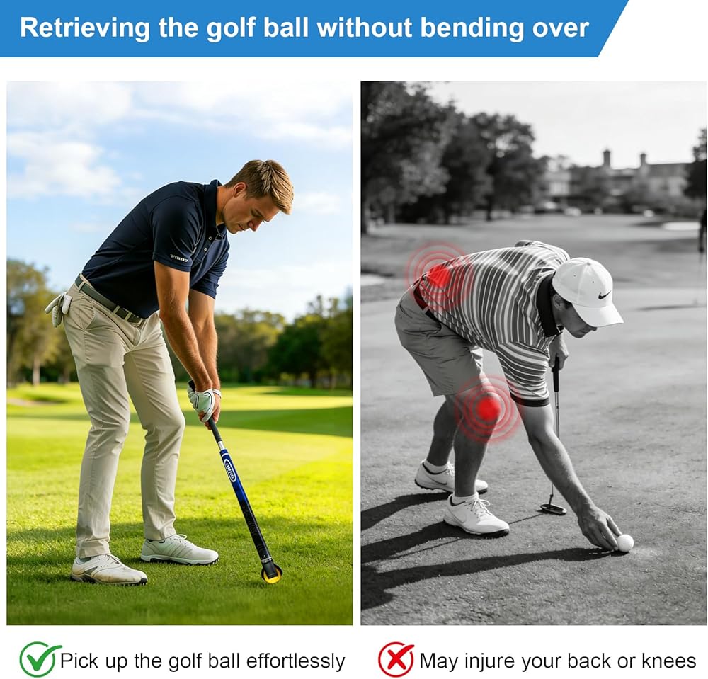 【No Bending & No Back Strain】Stop bending, squatting, or straining your back. Simply tap your putter to retrieve balls in seconds. Ideal for seniors, golfers with joint discomfort, or anyone looking to enjoy 18 holes without repeated bending strain.