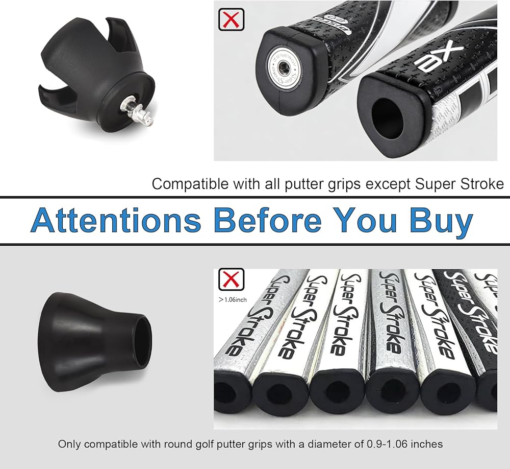 【Wide Compatibility & Tool-Free Installation】3-Prong: Fits most standard putter grips (excludes Super Stroke). Suction cup: Fits grips around 1.06 inches in diameter. Just slide on—no tools needed. Both install in seconds and stay locked in place.