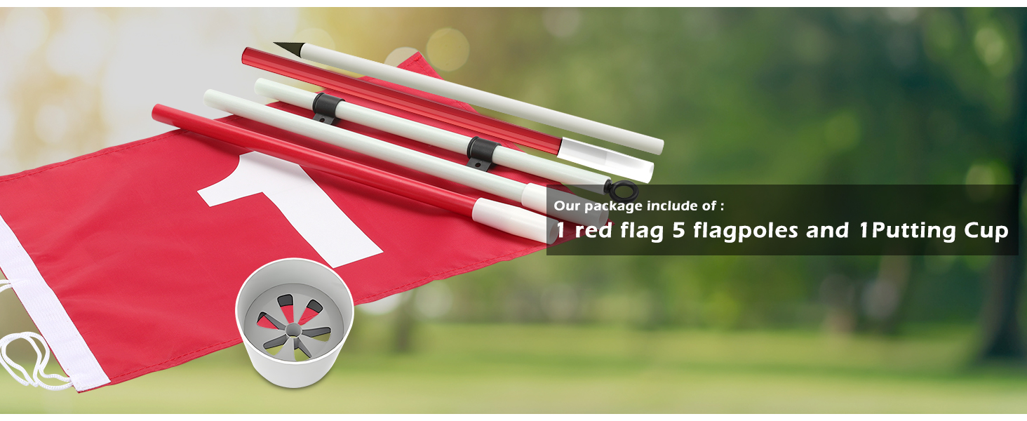【Stable & Safe】Our golf flag is detachable and consists of 5 flagpoles, The golf flagsticks is very convenient for you to carry and install. There is a strong connector between the flagpoles, which can withstand the strong wind without falling off. The golf flag sticks can be installed at any time and place you want. You can easily remove it and store it in your golf bag.