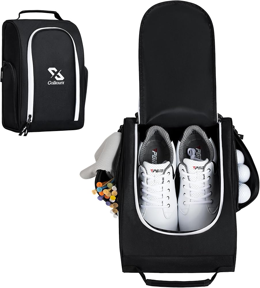 【Durable and Easy to Carry】Made of premium 600D heavy-duty polyester oxford, not easy to tear. Golf shoe bags with padded handle are easy to carry, perfect for outdoor sports. This golf shoe bag is the best gift for golf enthusiast, your family and friends