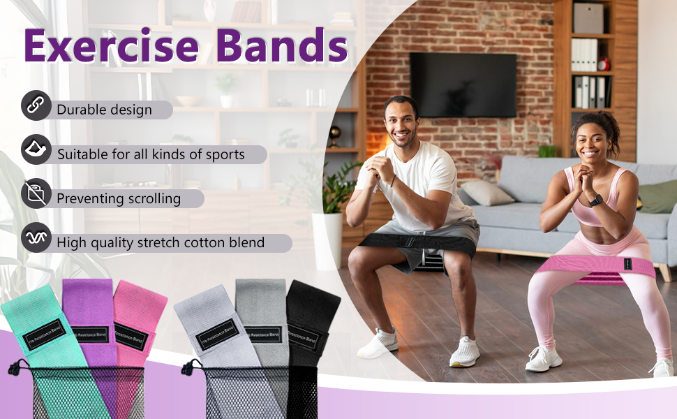 High quality fabric for comfort: Fabric resistance bands are made of high-quality elastic fabric using clever craft weaving technology. With good comfort and durability, you don't have to worry about falling off due to sweat during exercise, nor do you have to worry about repeated stretching for a long time causing the resistance band to lose its elasticity and effect. I believe that with the cooperation of the exercise band, you can Fully enjoy the joy brought by sports