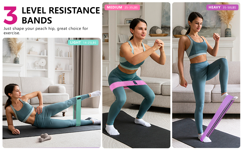 3 levels to meet different needs: The 3 different colors of the exercise resistance band set represent different resistance levels: Light (14-25LBS), Medium (25-35LBS), Heavy (35-50LBS). And compared with common resistance bands, we have optimized and upgraded them to increase their thickness. The combined weight allows you to choose the most suitable level according to your goals at different stages