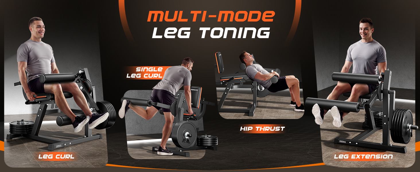 【Versatile Leg Trainer】FEIERDUN leg curl machine features advanced linear bearings and a simple plug-and-play design, allowing you to seamlessly switch between various exercises, such as leg extension, leg curl and hip thrust, and calf raise, etc