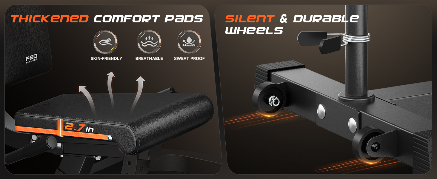 【Comfortable Padding】The carefully curved edges of the seat cushion perfectly fit the natural bending and extension movements of the legs, providing solid support as you pursue higher training goals. The thick foam roll and seat cushion are firm yet soft for maximum comfort and support