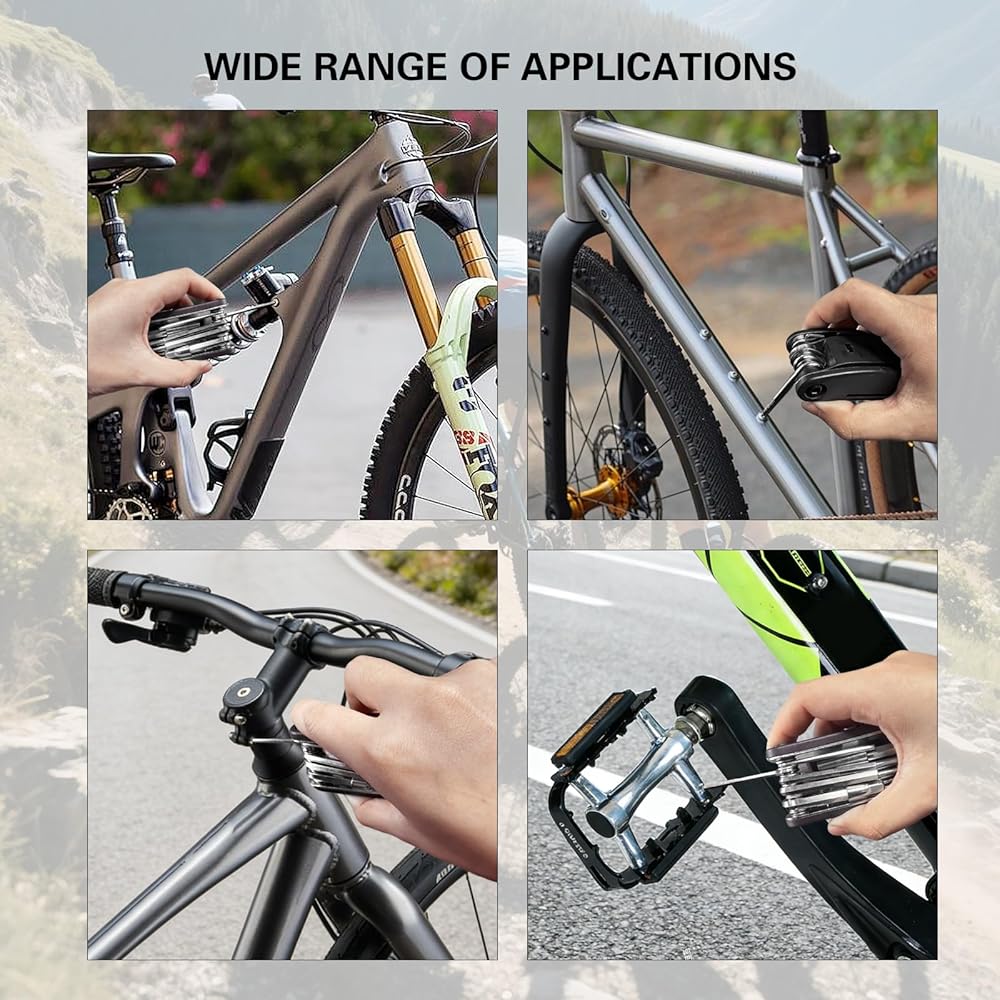 Built to Last for Demanding Riders: Engineered with a secure folding mechanism and premium materials, this mountain bike tool kit resists rust and wear. Whether you ride MTB, e-bike, or road bikes, stay prepared with a reliable, professional-grade bike repair kit that's ready for any ride