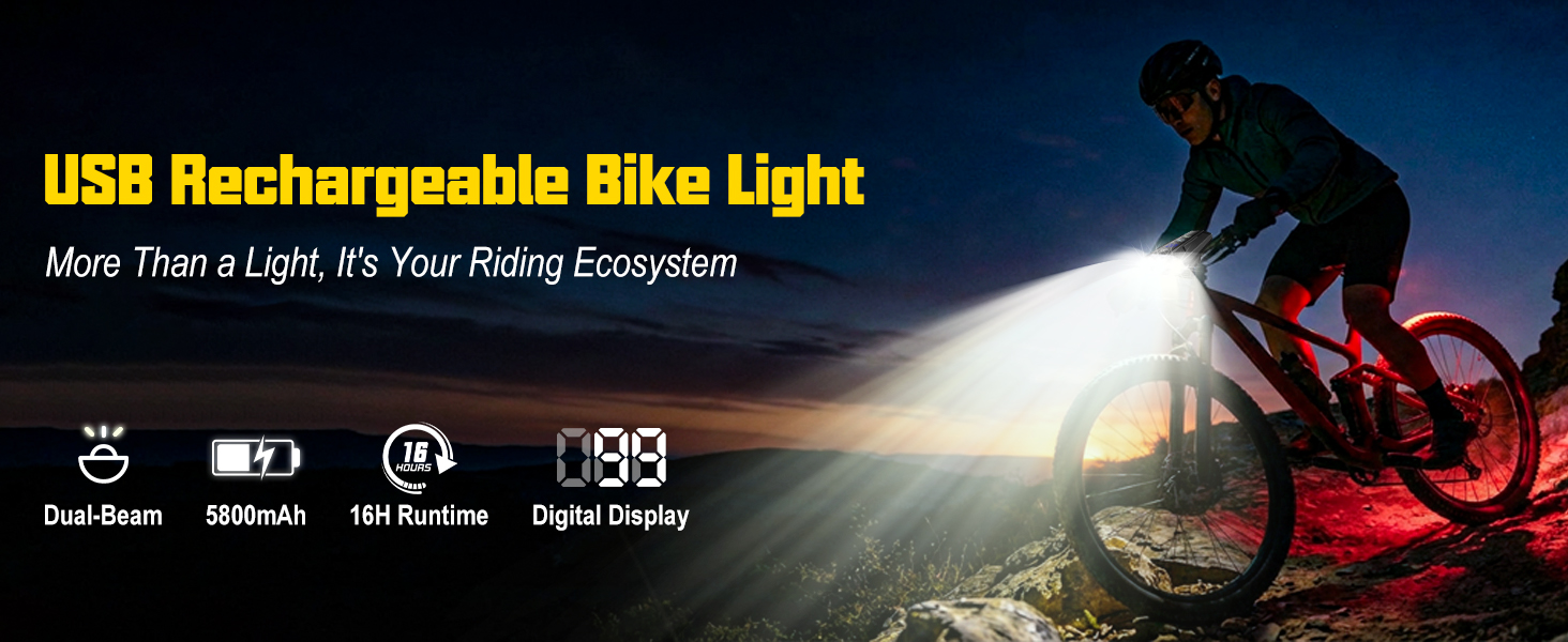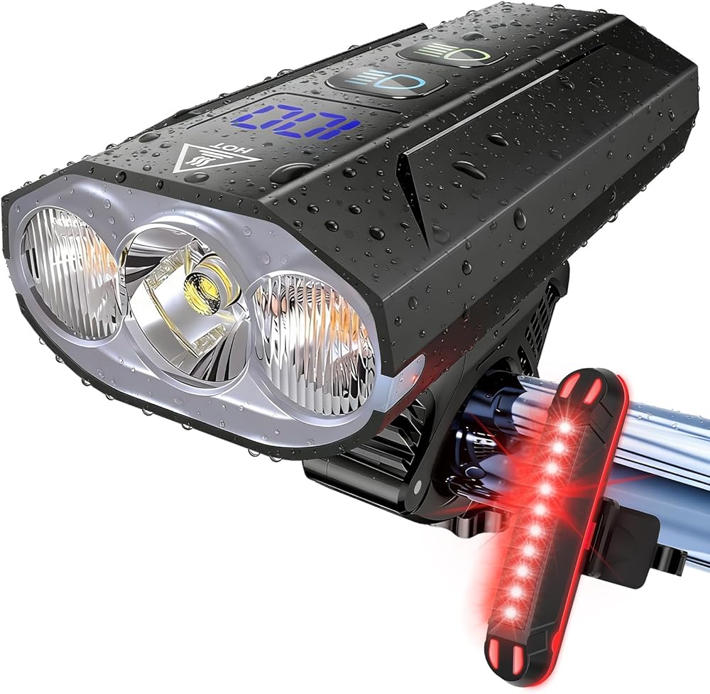 Bike Lights for Night Riding - 8000 Lumens Super Bright Bicycle Headlight Taillight, 5800mAh Rechargeable Bicycle Light with LCD Power Display, Waterproof 13 Modes Mountain Road Bike Light Set