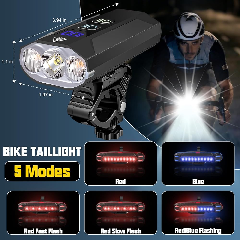 Complete Safety Set: Front & Tail Light: Includes a multi-functional taillight with 5 modes (Red/Blue/Flash). This set is perfect for cycling, hiking, camping, or as an emergency flashlight. Easily mounts to handlebars, helmets, or backpacks without any tools
