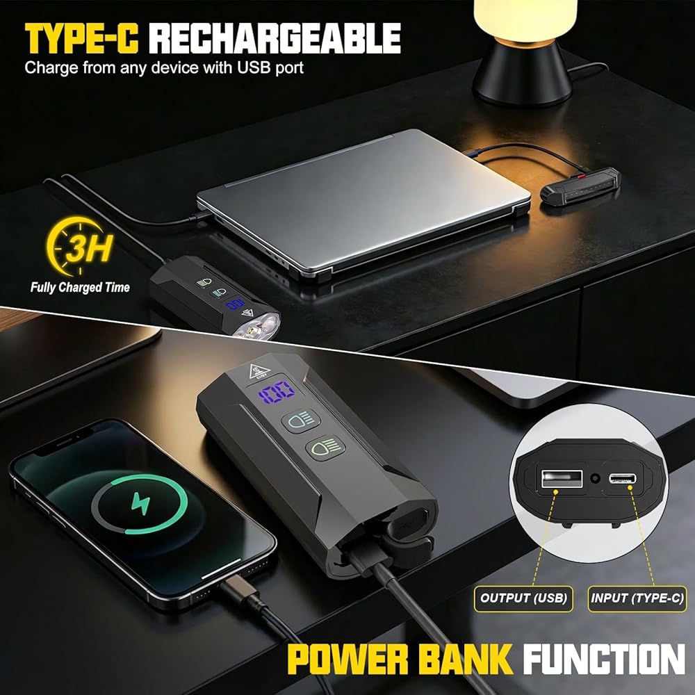 Smart LCD Display & 3-Hour Fast Charging: No more guessing! The integrated LCD screen shows the exact remaining battery percentage. With Type-C fast charging technology, it reaches a full charge in just 3 hours, ensuring you're always ready to hit the road
