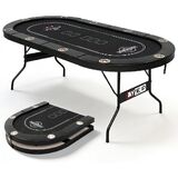 84" Poker Table for 10 Players, Foldable Texas Holdem Table with Padded Rails & 10 Cup Holders, Portable Casino Board Game Table for Game Room, Blackjack, Party (Black)