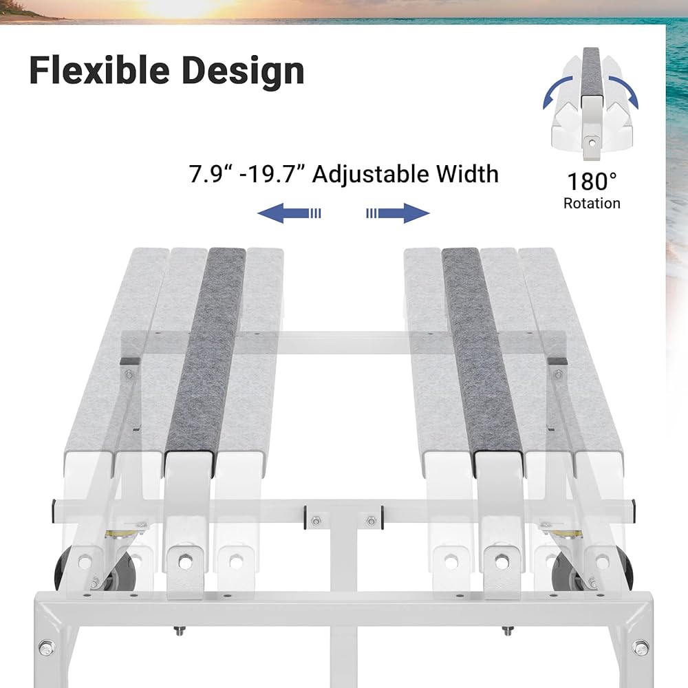 Adjustable and Protective Bunks: The two carpet - wrapped bunks are adjustable in width and angle. Multiple bracket holes let you customize the fit for your watercraft, protecting it from scratches