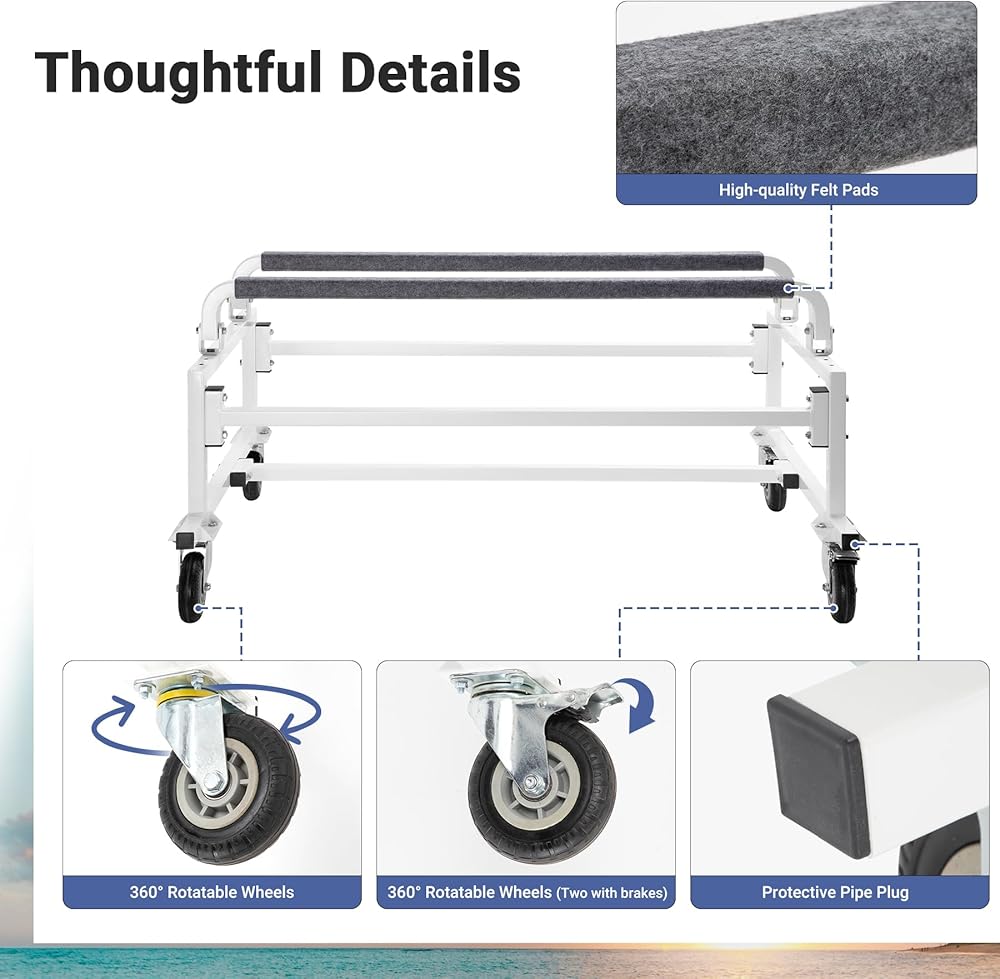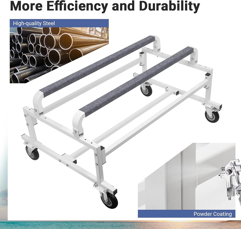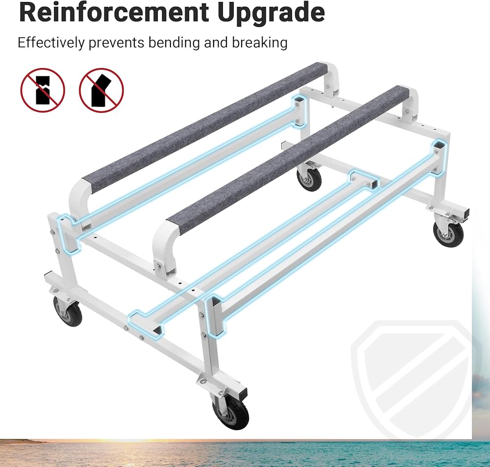 Durable and Long-lasting: Made of high quality steel, this PWC dolly resists rust and is built to last. Reinforcement plates at joints for added stability and powder-coated finish to withstand harsh marine conditions