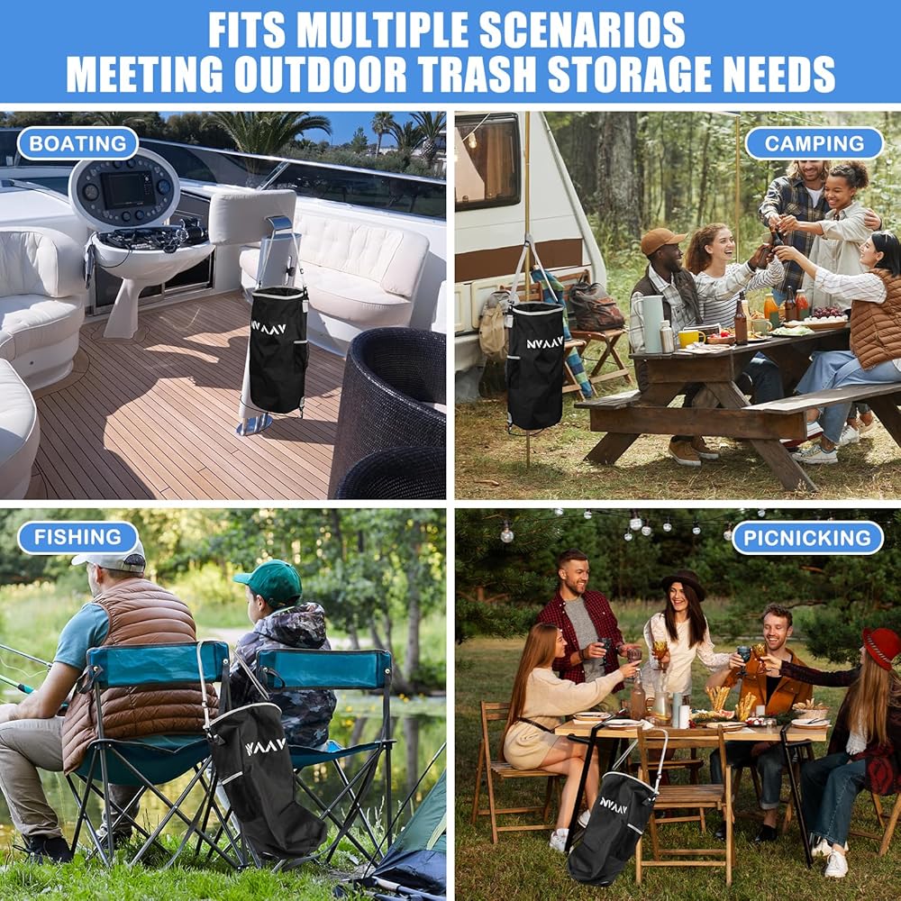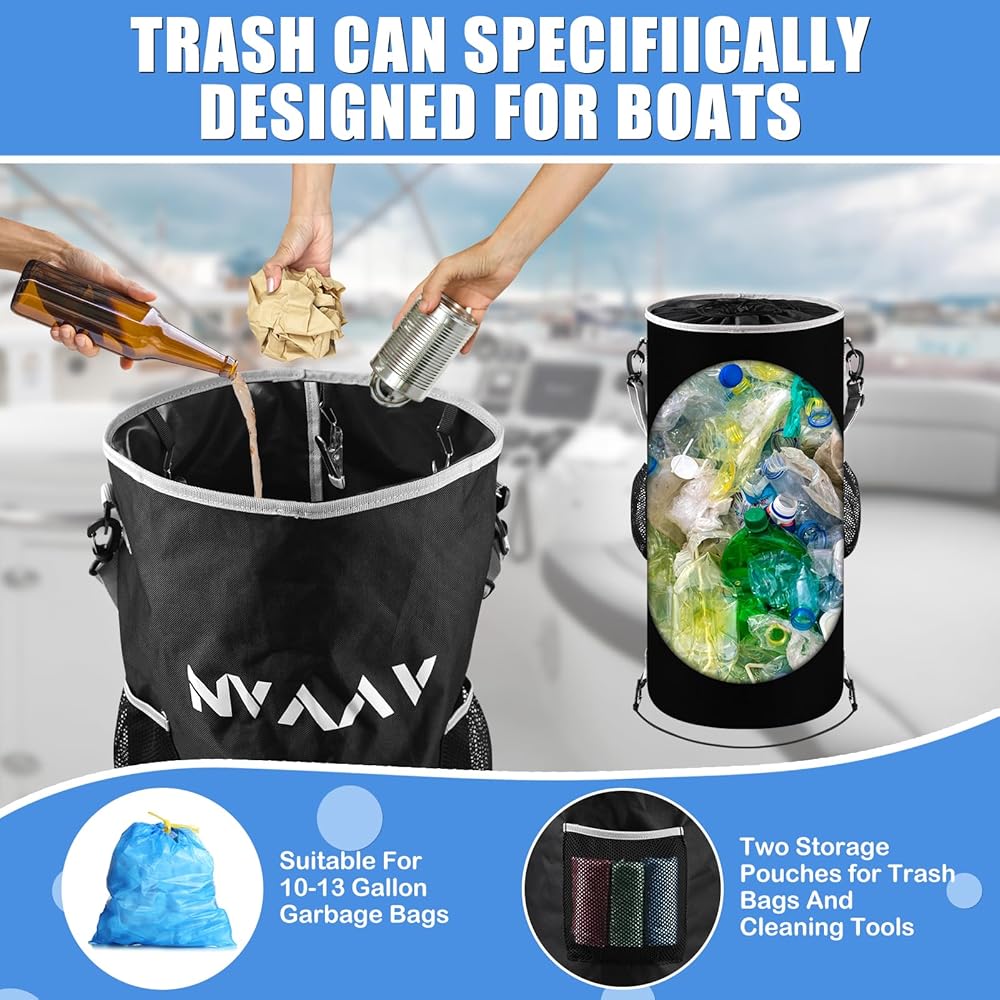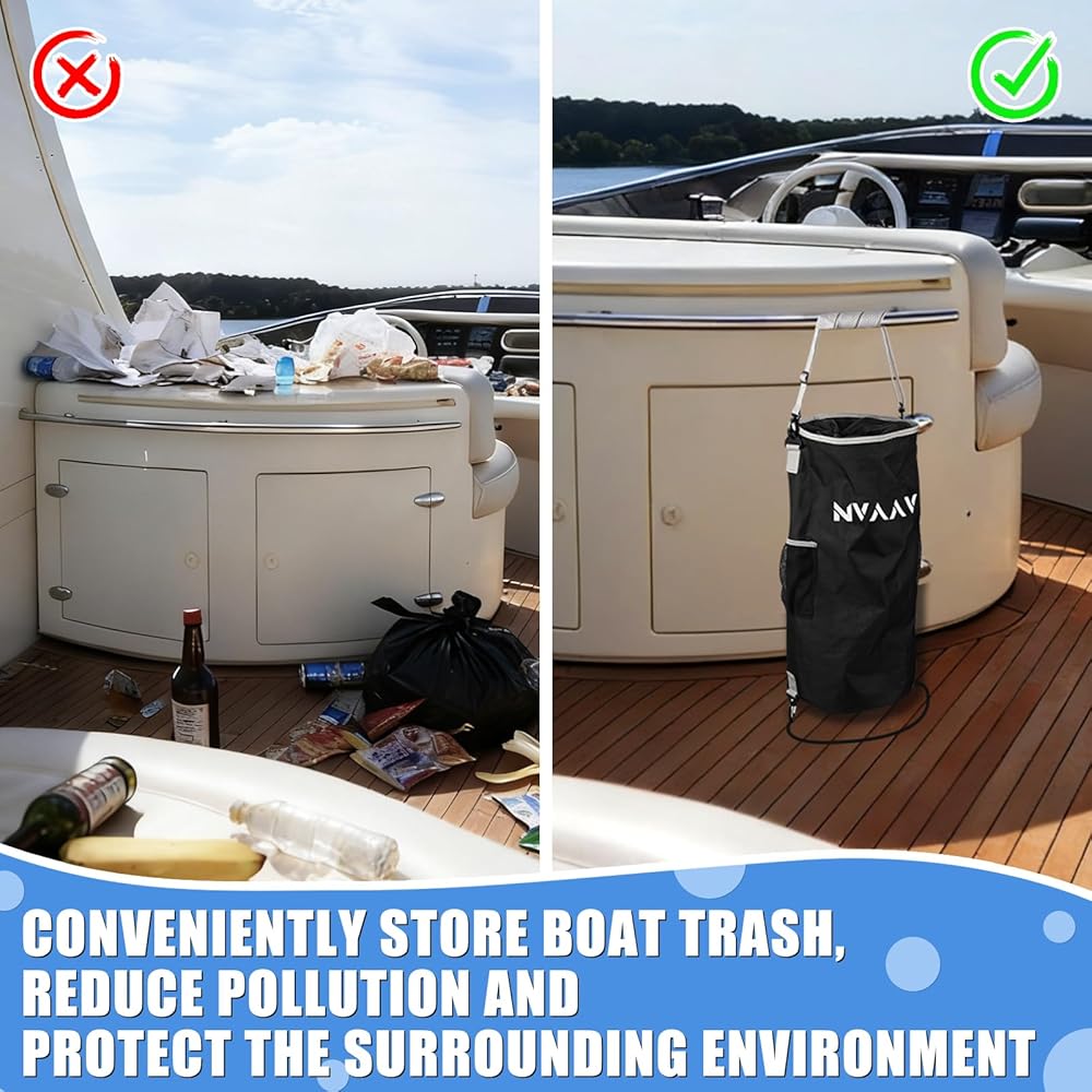 【Easy to Clean, Reusable】: This boat trash bag is easy to clean—a simple rinse quickly removes stains and eliminates lingering odors. Its waterproof liner ensures rapid drying after washing;Reusable and made from foldable material, it stores and carries effortlessly, always ready for your next voyage