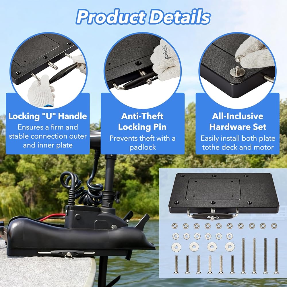 🔒 ULTIMATE ANTI-THEFT SECURITY: Detach your motor in seconds and take it with you! When mounted, our rock-solid stainless steel U-handle with locking pins secures your motor. Use your own padlock (not included) through the lock hole for maximum theft prevention and peace of mind