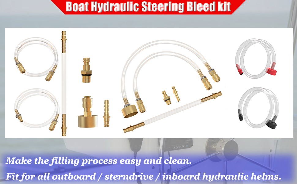 The boat hydraulic steering bleed kit compatible with seastar, which is used for cleaning boat hydraulic steering systems.
