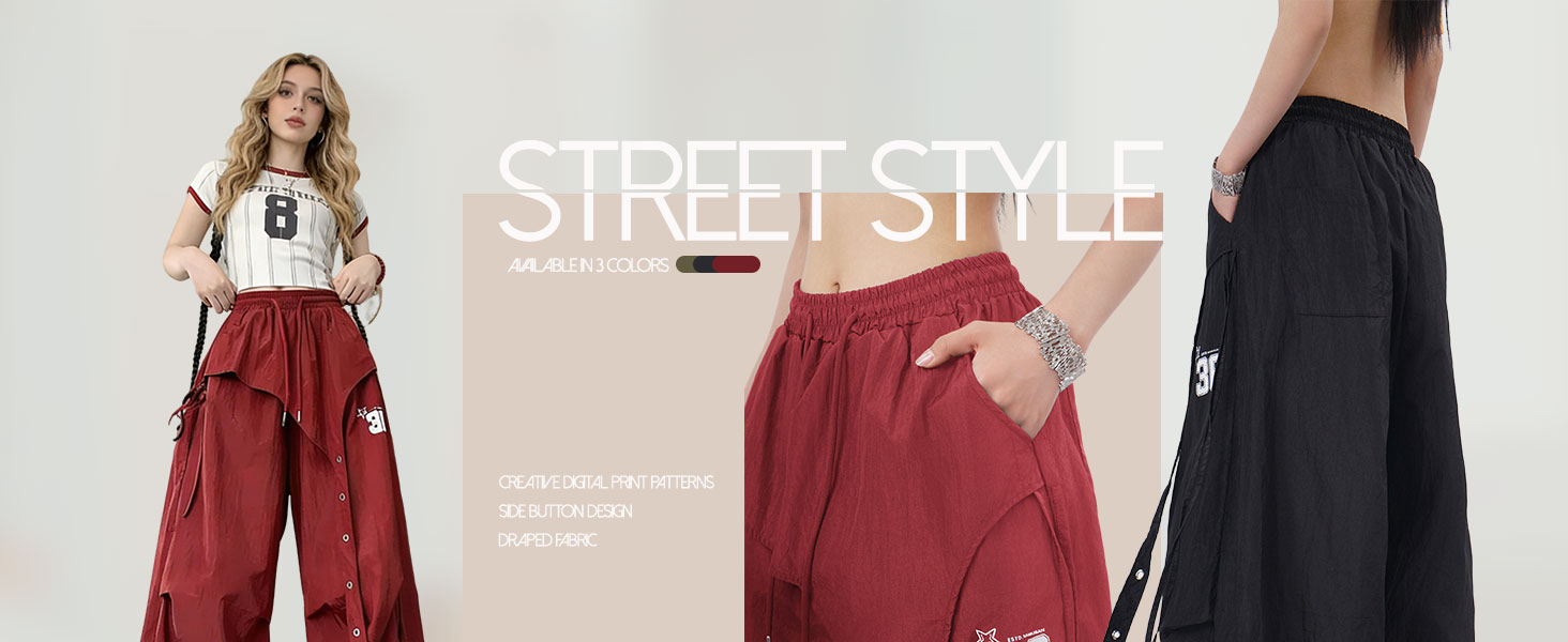 Y2K Hip Hop Streetwear Vibe – Features baggy wide leg cut and trendy ruched details, this pair matches the retro Y2K streetwear aesthetic, making you stand out in casual outings and urban scenes.