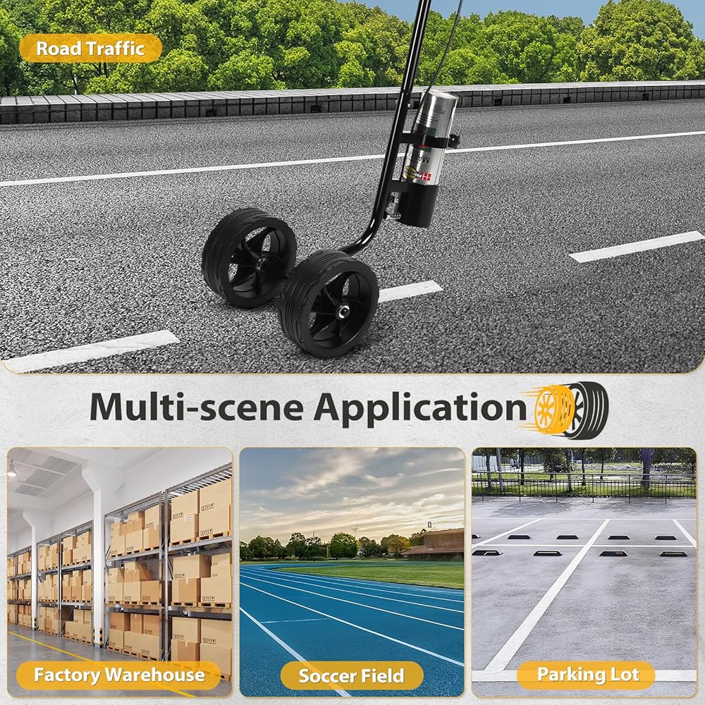 【Wide Applicability】Our dual-wheels marking paint wand is ideal for use on pavement, concrete, asphalt, gravel, soil, grass, and more. Perfect for marking parking lots, construction sites, sports fields, landscaping projects, public facilities, and any area that requires clear lines marking.
