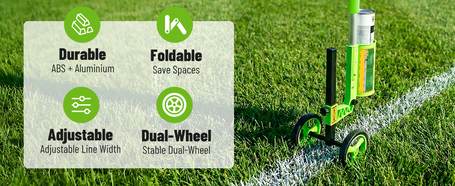 🌟【Upgraded - Stable Dual-Wheel Design】The Zozen Striping Line Paint Wand features a high-strength metal rod and dual thickened rubber wheels. The upgraded dual-wheel design ensures equipment stability, allowing smooth and steady movement even on uneven terrain, making it easy to draw straight and uniform lines.