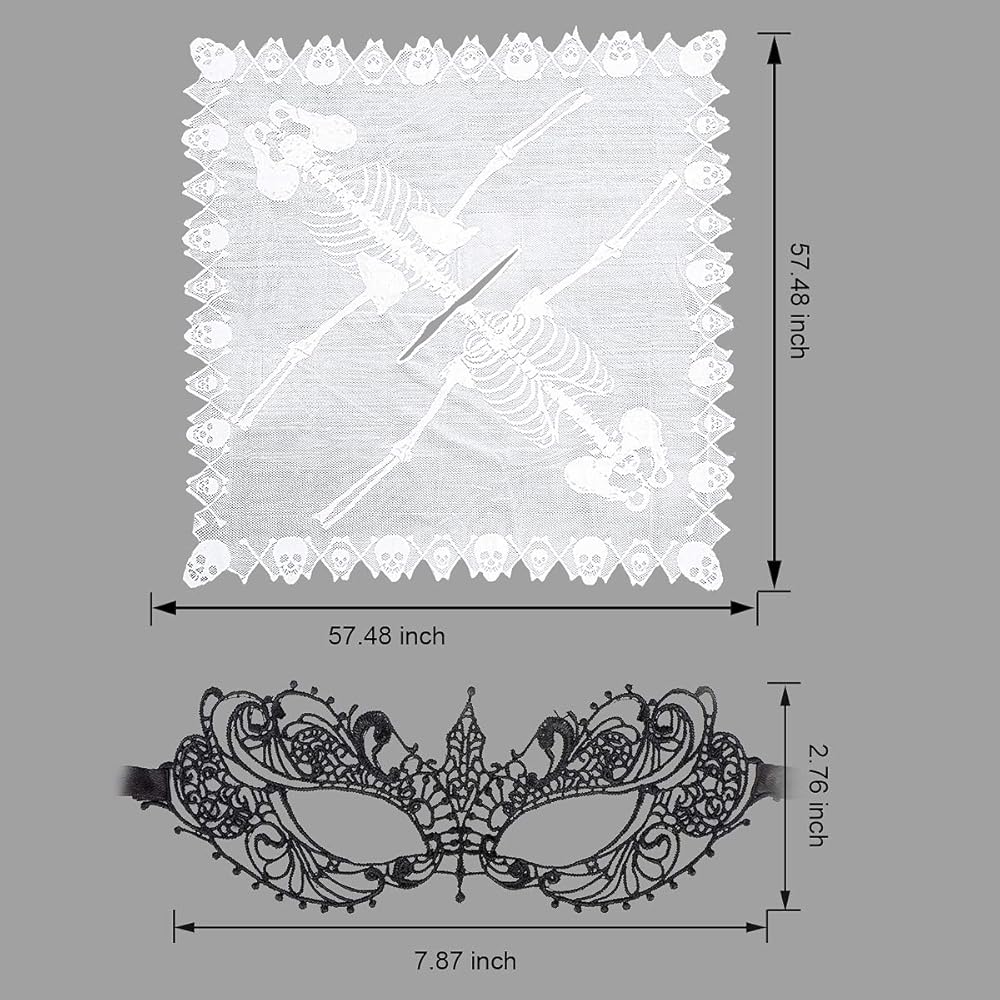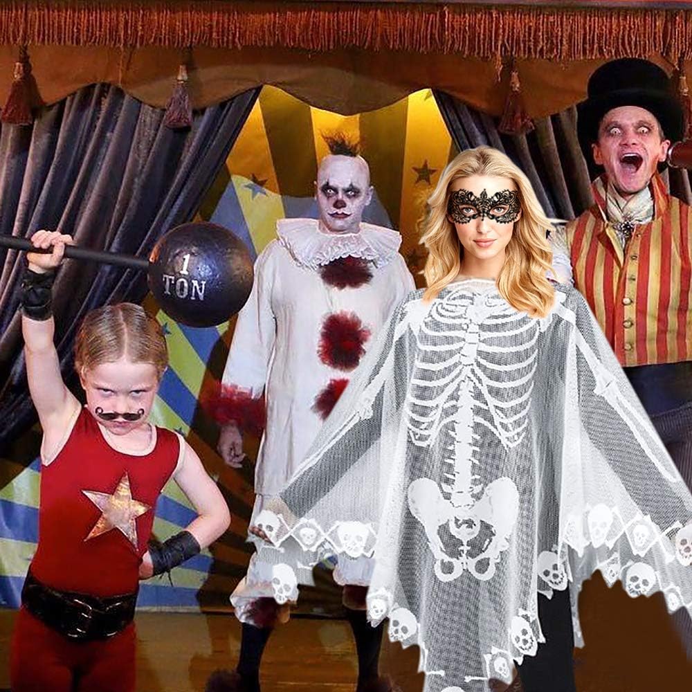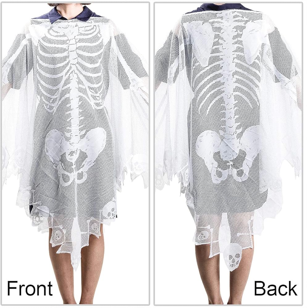 ❤INCLUDES: 1PC 60"×60“ white lace skeleton bones poncho and 1PC lace masquerade mask, perfect for Halloween party outfit and easy Halloween women and girls costumes.