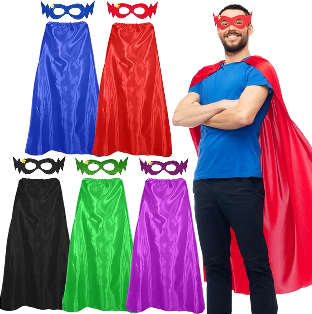 【Adults Super Hero Capes】:★ Adults Superhero capes and masks set include: 5 pieces superhero capes & 5 pieces color matching mask. They will add endless joy and enrich your life.