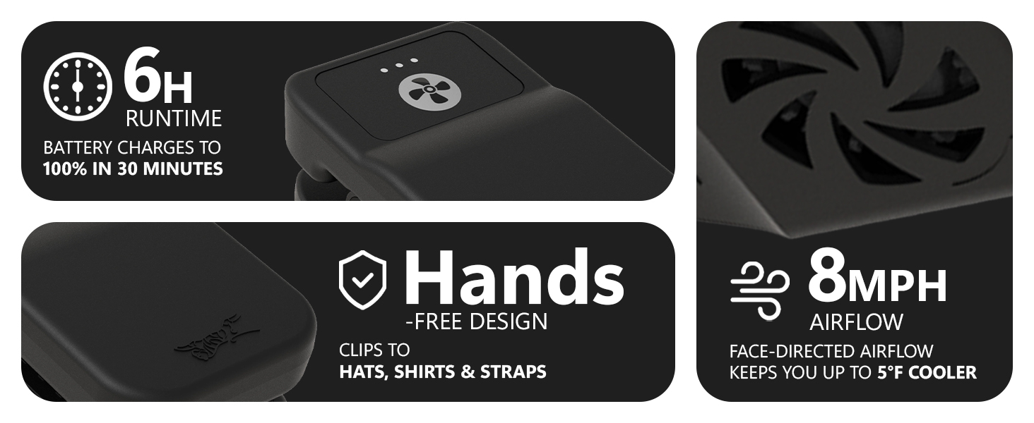 HANDS-FREE COOLING: Unlike bulky neck fans that miss the mark, Lil Breezy delivers targeted airflow right to your face. Designed for golfers, runners, and athletes. Whether swinging on the green or pushing your pace outdoors, this portable fan cools your head by up to 5°F without getting in your way. Stay dry, focused, and energized.