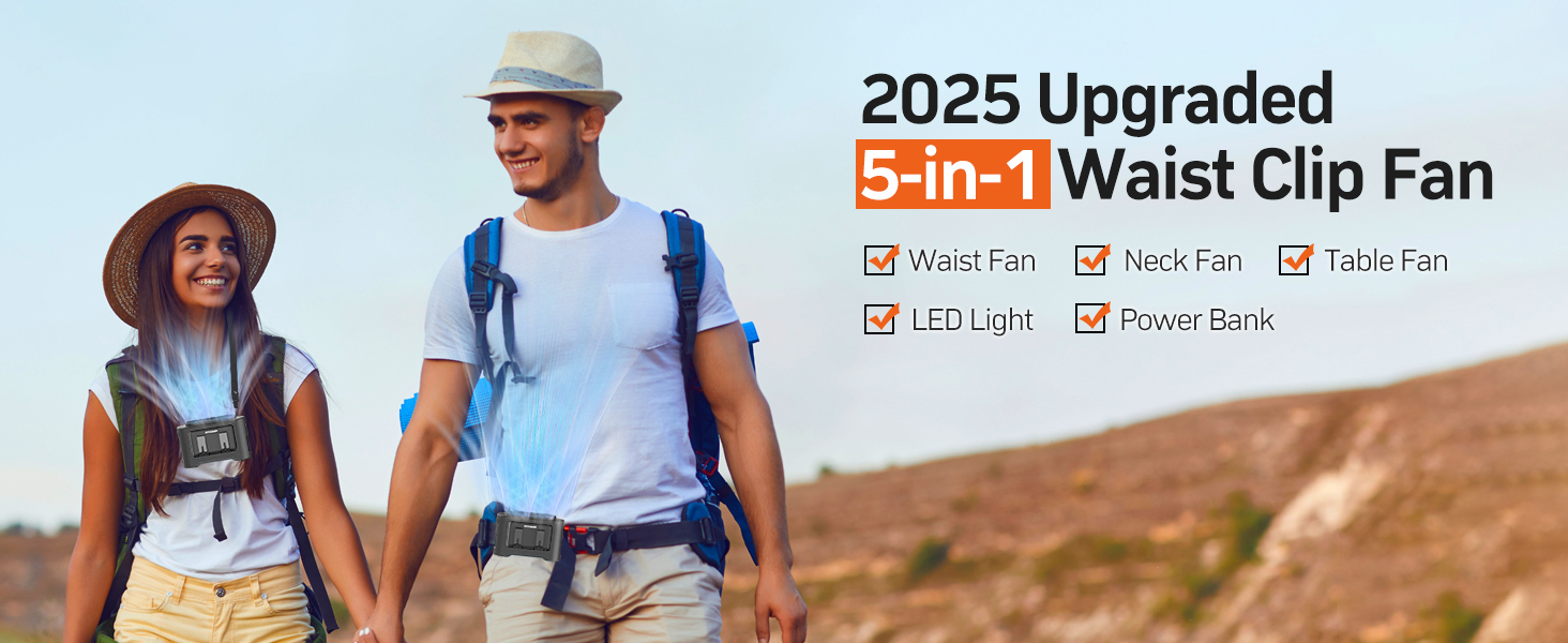 متينة وجاهزة للاستخدام في الهواء الطلق: مصممة للاستخدام في الهواء الطلق، تشتمل مروحة الخصر على غطاء مقاوم للصدمات من السيليكون عالي الجودة وغطاء للغبار. تضمن مشابكها الأربعة المصنوعة من فولاذ المنغنيز تثبيتًا آمنًا أثناء الأنشطة مثل البناء والمشي لمسافات طويلة وغير ذلك الكثير، مما يجعلها الرفيق المثالي لرحلاتك الصيفية.