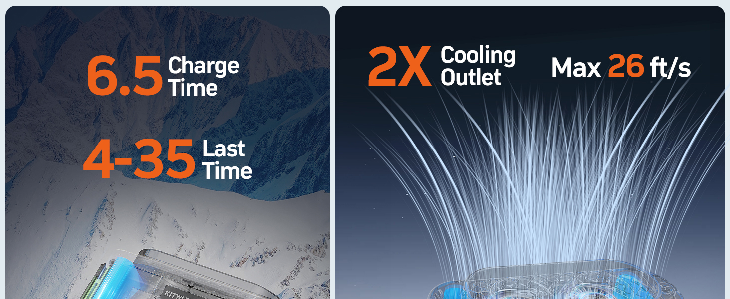 تبريد طويل الأمد لمدة 40 ساعة: مزودة ببطارية قوية قابلة لإعادة الشحن بقدرة 14500 مللي أمبير في الساعة، توفر مروحة الخصر هذه ما يصل إلى 40 ساعة من التبريد المستمر بأقل سرعة. تتميز بشحن سريع من النوع C، يمكنك إعادة شحنها بالكامل خلال 6.5 ساعة فقط، مما يضمن لك الاستمتاع براحة تبريد متواصلة أينما ذهبت.