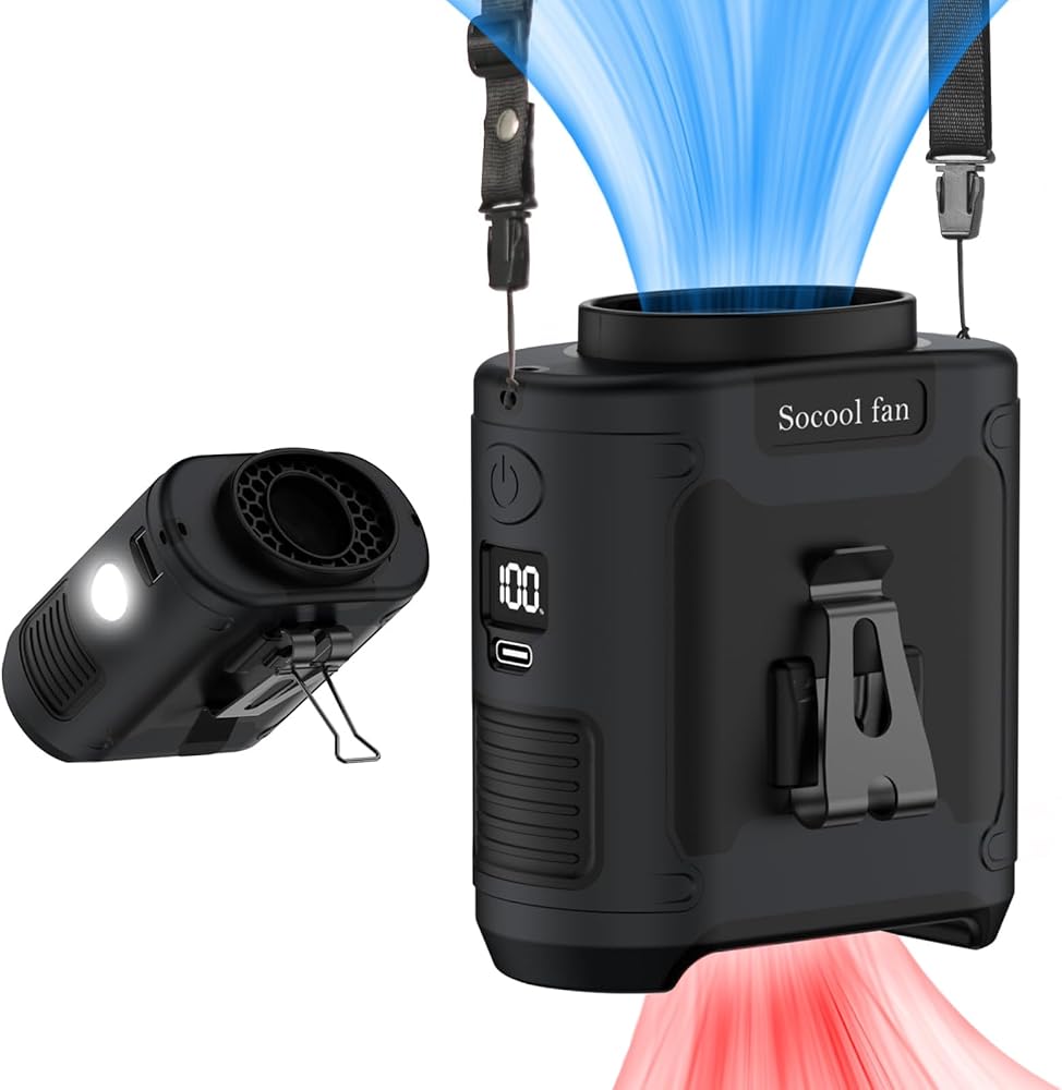 【Wider Fan Outlet with Silicone Cover】Cool clip fan features a widened air intake and outlet for blowing strong airflow. The portable belt fan comes with a high-quality protective silicone cover to protect against drops and damage, well-designed for various outdoor usage scenarios, catering to occupations like construction workers and farmers