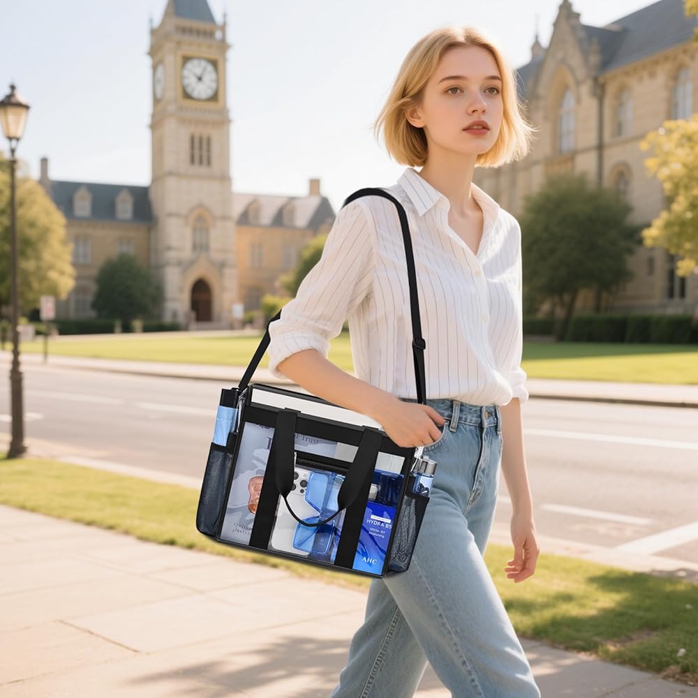 【Clear Bag for Stadium Events Size】Our stadium-approved clear tote bag measures 12" x 6.5" x 11.5", ensuring quick and easy passage through strict security checks—making it perfect for concerts, sports events, and more