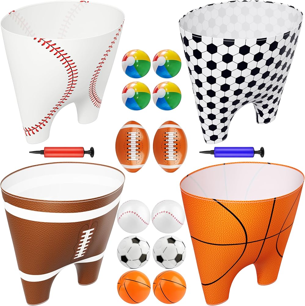 Complete Sports-Themed Game Set - This granny pants yard game set includes 4 sports-printed pants (baseball, basketball, football, soccer), 12 inflatable toss game balls (2 of each sport themed ball plus 4 beach balls), and 2 pumps for instant setup and lasting fun. Please note that this product is suitable for people aged 16 and above.