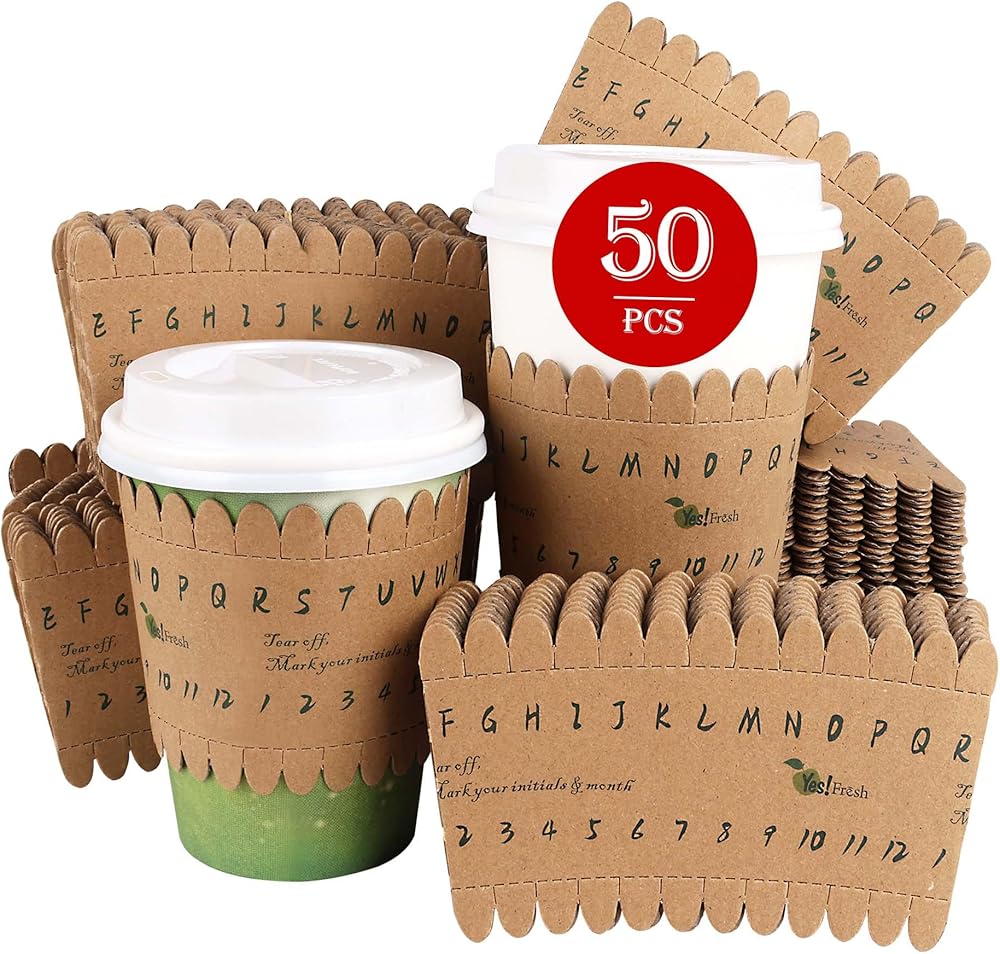 Yes!Fresh Eco-ID Sleeve - Unique Paper Cup Sleeves for Easy Cup Identification, Compatible with 12oz, 16oz, and 20oz Paper Cups, Reduces Waste for Parties, Gatherings, and Events (50 Pack)