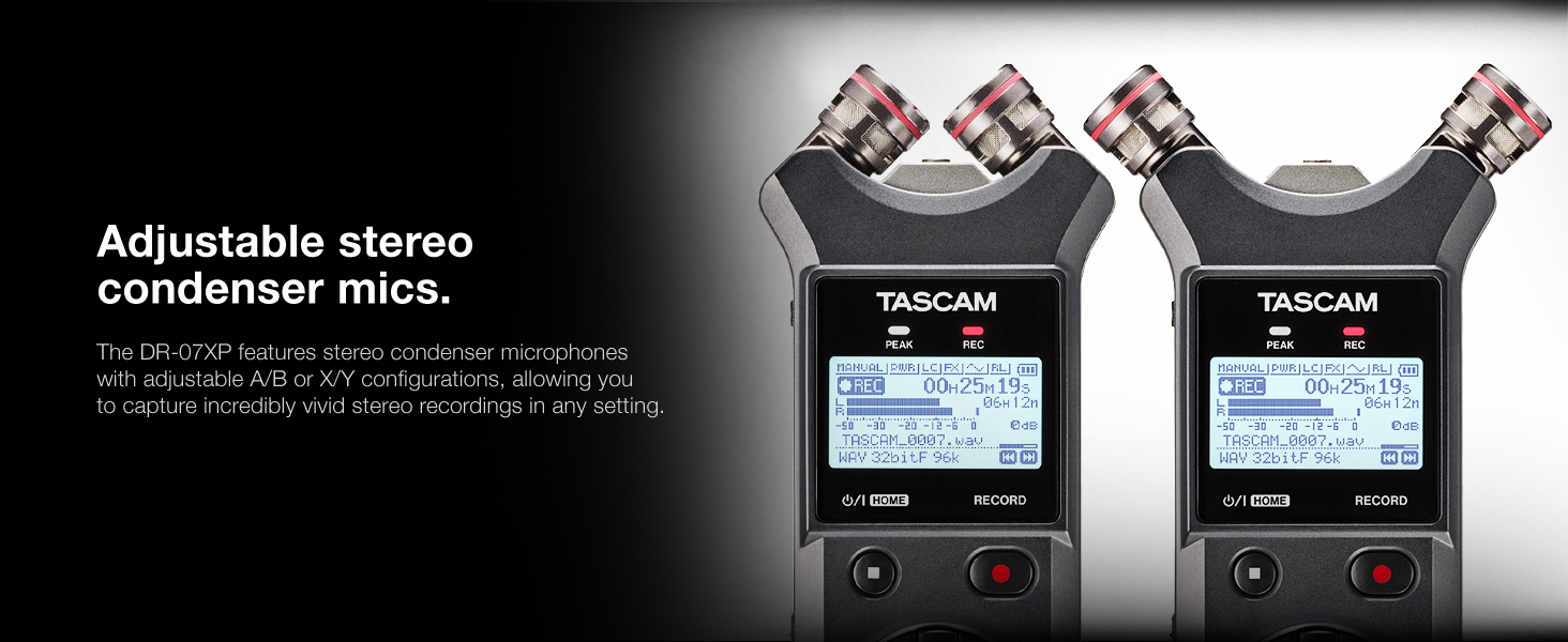 The TASCAM DR-07XP portable handheld recorder makes it easy to capture pro-quality recordings for music, audio-for-video, meetings, dictation, and more.