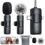 Plug & Play with Universal Compatibility: No app or Bluetooth pairing needed. The deep grey 3-in-1 receiver (USB-C, Lightning, 3.5mm) works instantly with iPhone 15, Android devices, cameras, and PCs. Just plug in and power on—the mini microphone pairs automatically, offering true plug-and-play convenience for any recording scenario