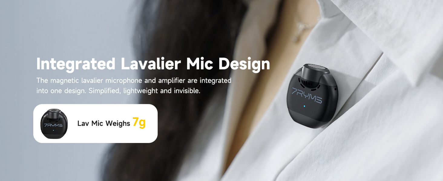 【Wireless Voice Amplifier with Magnetic Lavalier Mic 】The amplifier and magnetic lavalier mic are integrated into one design. Simplified, lightweight and invisible, it supports a variety of wearing styles. Adopts a 9.7mm large size condenser mic capsule. It can effectively reducing ambient noise and recording clearer sound.