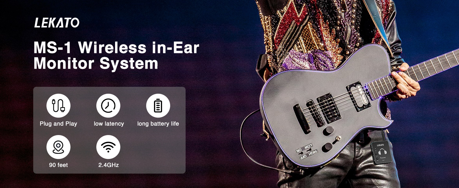 LEKATO MS-1 Wireless in Ear Monitor System, 2.4GHz Stereo in-Ear Monitoring with Transmitter Receiver Clip On, One to Many, Auto-Pairing,Wireless IEM for Band Rehearsal,Studio, Church,Small Gigs